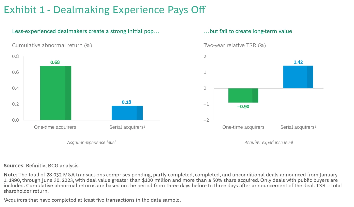 Experience matters in M&A. Experienced acquirers can ramp up more quickly in time-critical M&A situations, are more precise in their due diligence, and know where the integration pitfalls lie. Experienced sellers know when to go to market, can prepare their assets properly, and negotiate more shrewdly. They also know when to walk away from a deal that is not meeting their objectives.