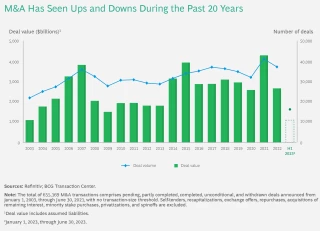 Over the past two decades of mergers and acquisitions, deal makers have experienced a roller coaster of highs and lows. (See the exhibit.) In 2003, they were recovering from the aftereffects of meteoric rise and sudden crash of the dot-com boom. Yet, their animal spirits were resilient. In less than five years, global deal values skyrocketed to record levels that were not again exceeded until eight years later. Propelling the surge was an uptick in private equity deal activity and innovative debt financing instruments that increased leverage.